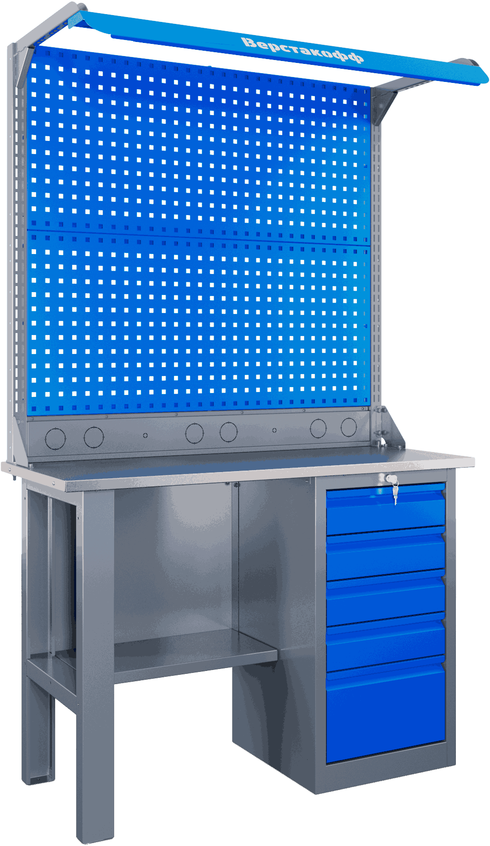 Помимо чисто профессиональных достоинств, линия Self отличается привлекательным дизайном: сине-серая гамма смотрится аккуратно и приятно с эстетической точки зрения, поэтому такой верстак гармонично впишется в мастерскую, внешний вид которой важен для владельца.
